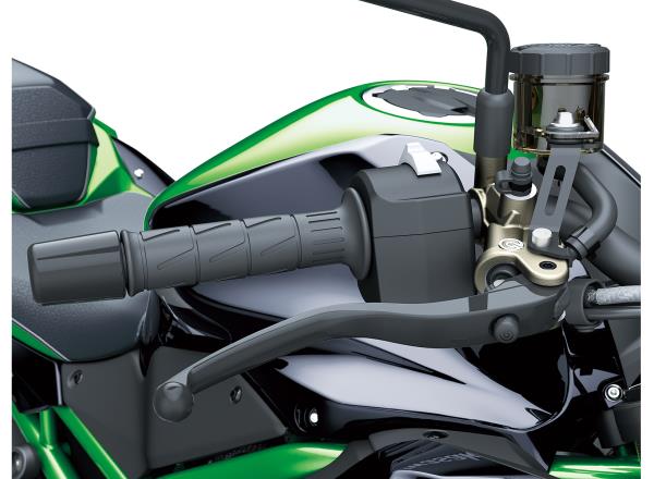 Kawasaki’s cruise control system allows a desired speed to be maintained with the simple press of a button. Once activated, the rider does not have to constantly apply the throttle. This reduces stress on the right hand when travelling long distances, enabling relaxed cruising and contributing to a high level of riding comfort. Operation of the Electronic Cruise Control is conveniently activated from the left handle.