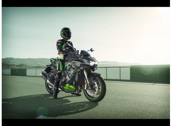 The styling of the Z Series flagship Z H2 was shaped according to its SUGOMI & Minimalist design concept. Its dynamic crouching form, which calls to mind a predator poised to attack, and the asymmetric Ram Air intake on its left side are elements of its fiercely intense and highly individualistic SUGOMI design. Its compact chassis is the product of a minimalist design philosophy, with all functional parts shown simply, without flourish, and made as small as possible. Conversely, the prominent display of the new steel trellis frame its aluminium pivot plate only underscores their importance – both functionally and as styling elements. Finally, when discussing the Z H2’s styling, the significance of the Kawasaki River Mark emblem displayed on the headlamp cowl should not be forgotten. Its use, an honour permitted only for machines powered by supercharged engines, confirms the Z H2 as a flagship model.